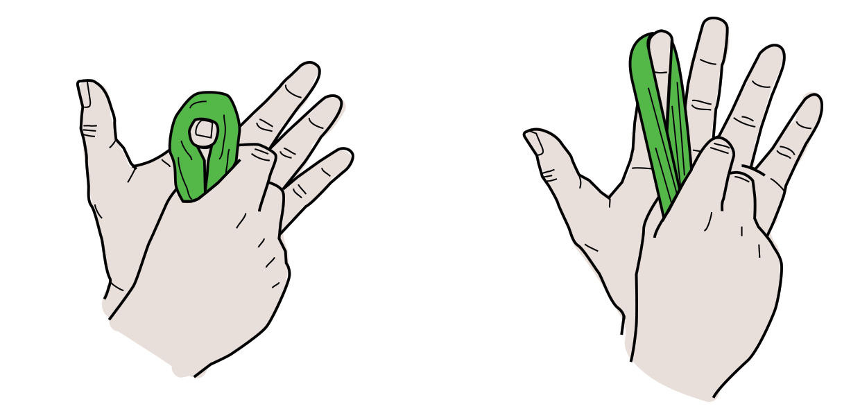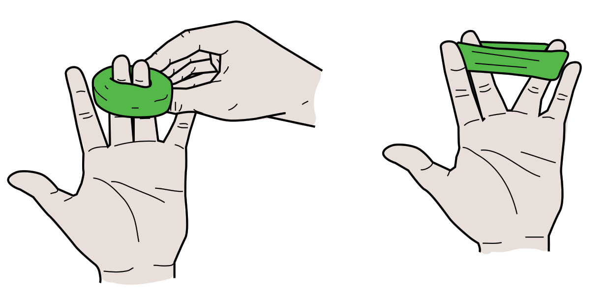 Hurkolj át egy gyurmából sodort vagy húzott csíkot az erősíteni kívánt ujjadon, aminek a két végét a másik kezeddel stabilan tartva nyújtsd az ujjad a gyurma ellenállását használva. A használt csík vastagságával szabályozhatod az ellenállás mértékét.
